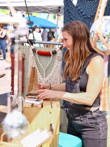 Aliza Rose, nicknamed Rosie by her family, is the creative force behind Rosie the Wanderer. She fell in love with macramé when she was a child in Girl Scouts, and reignited the flame in adulthood. She created Rosie the Wanderer in 2016, and has since transformed her passion for macramé into her full-time job. Aliza is a maker of all things boho & disco, a lover of happy moments, and a fan of good belly laughs. She would love to meet you! Send her a little hello message, or stop by one of the stores she is featured in to shop her products in person!